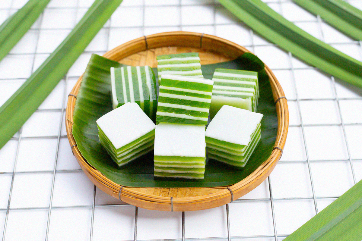 ขนมชั้นใบเตย ขนมไทยคลาสสิก เนื้อนุ่มหนึบ หอมกลิ่นใบเตย